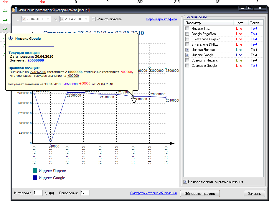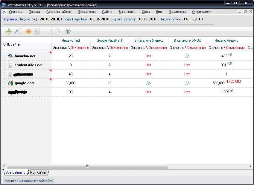 WebMaster Utility выполнять обновление показателей сайтов по указанному расписанию.