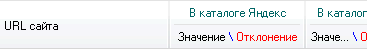 Сервис "Мониторинга показателей сайта" разбит на таблицу.
