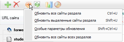 - Обновление всех сайтов текущего активного раздела - Обновляет все сайты текущего раздела