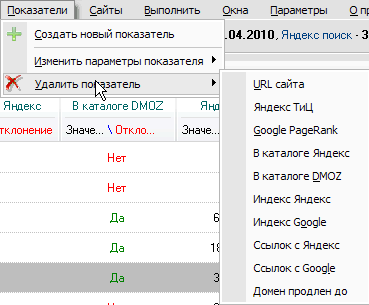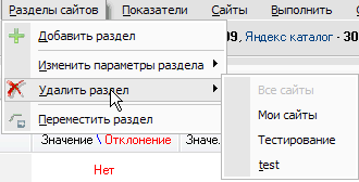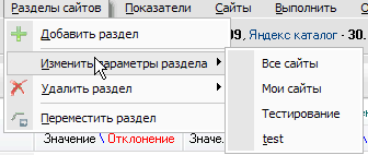 Меню показателей сайтов