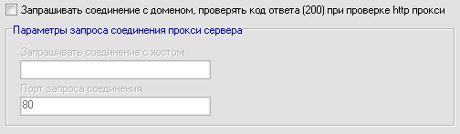 Определяет домен, к которому выполнять соединение через проверяемый прокси сервер и порт, по которому производить соединение. Пример указания домена "www.имя_домена.зона" и порт "80", в итоге получим: при проверки прокси сервера (HTTP прокси) помимо основной проверки будет выполнена попытка соединения с указанным хостом через указанный порт, затем попытка получить заголовок ответа от указанного хоста - если код ответа будет 200 - результат успешный, в противном случае - прокси будет считаться нерабочем даже в том случае, если основная проверка соединения, обработки покажет что сервер в рабочем состоянии. Дополнительная проверка на 100% гарантирует передачу контента страницы при использовании данного прокси.