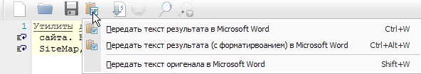 - Позволяет передать текст оригенала\результата текста в текстовый процессор Microsoft Word как в виде исходного текста, так и с подсветкой обработанных слов.