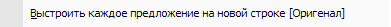 Выстраивает все предложения текста, каждое на новой строке (завершением предложения считается символы [.?!]