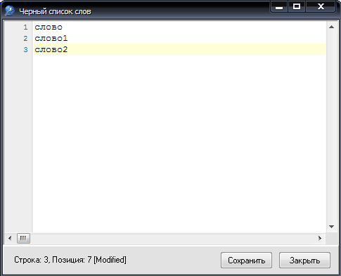 Слова в черном списке прописываются каждое на новой строке.