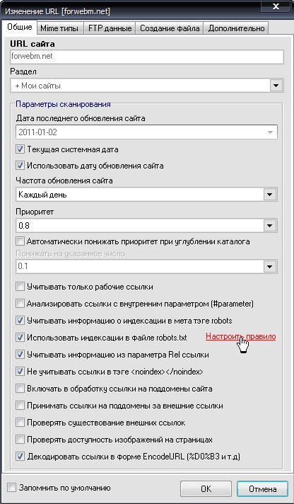 Настройка правила доступна из окна добавления/изменения параметров сайта.