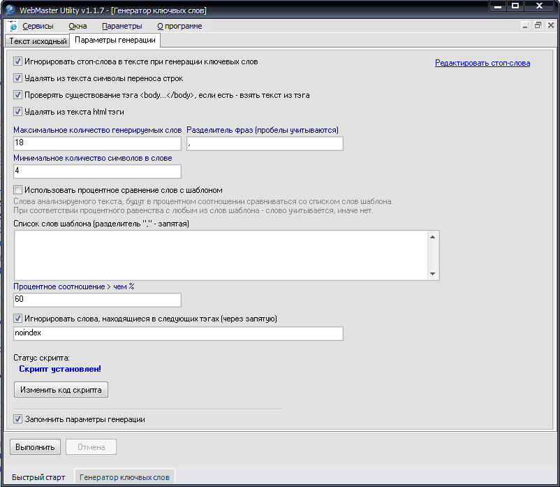 -Обработка текста выполняется скриптом (скрипт доступен для редактирования)