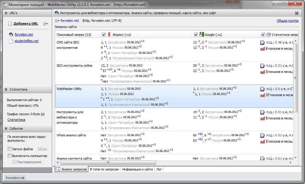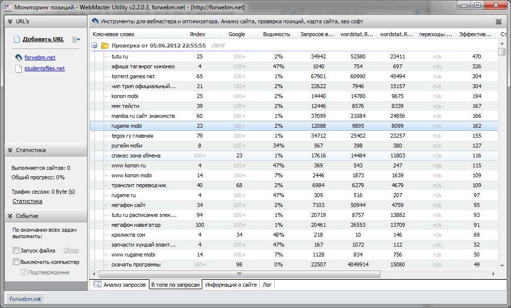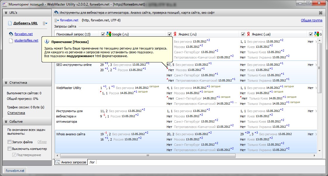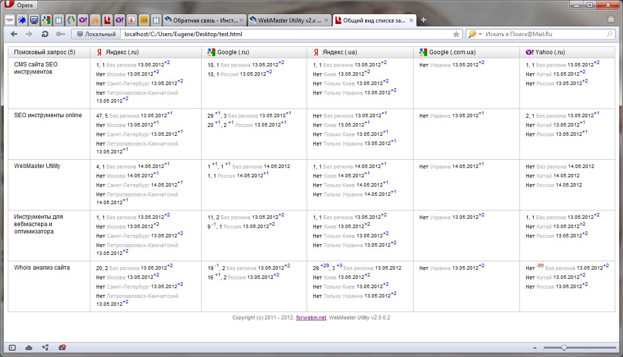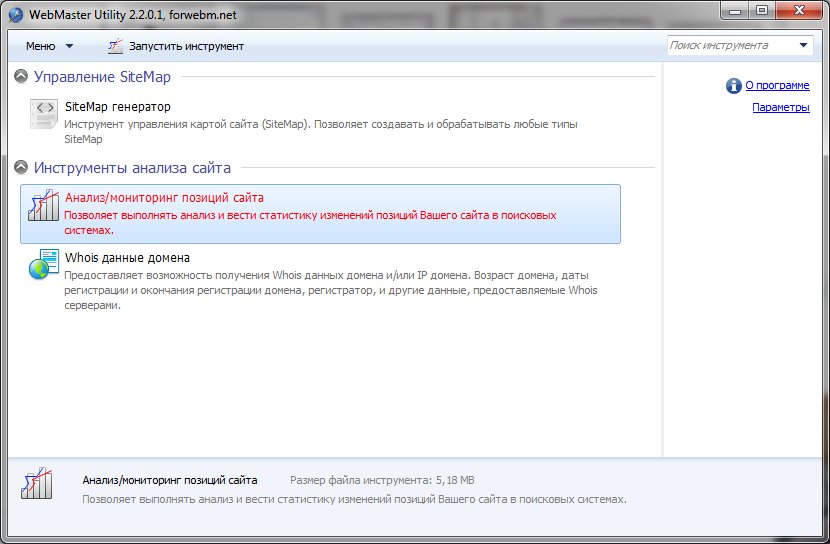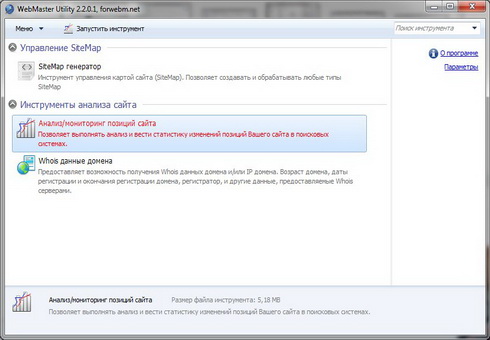 WebMaster Utility v2.xПрограмма WebMaster Utility v2.x является комплексом программных продуктов (инструментов), предназначенных для облегчения работы вебмастера и оптимизатора в процессе создания/продвижения сайта(ов).