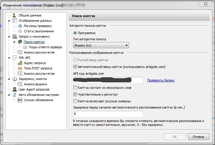 Для любого поисковика инструмента `Анализ и мониторинг позиций сайта` (если имеется алгоритм поиска и обработки каптчи) возможно подключить использование сервиса antigate.com для автоматической дешифровки текста на каптчи и продолжении анализа. (как правило каптча появляется у поисковиков в ответ на слишком частые запросы, а также при использовании большого кол-во одновременно работающих потоков). При использовании большого кол-ва потоков рекомендуем использовать список прокси серверов, и как можно побольше + желательно такой список, в котором Вы хотя бы на 50% уверены + включить возможность автоматической проверки прокси перед обработкой и в случае их нерабочего состояния - автоматически удалять данные прокси. Но все же, если Вы решили использовать прямой парсинг выдачи поисковика - Вам может пригодиться автоматическая обработка изображения на предмет каптчи при помощи сервиса antigate.com