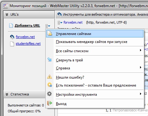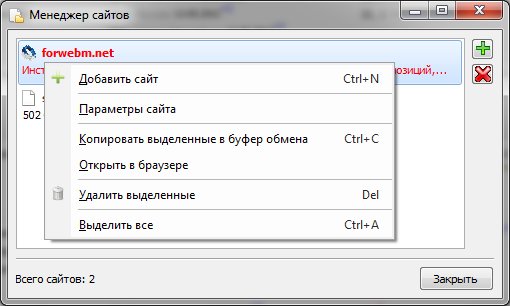 Для управления сайтом используйте контекстное меню списка.