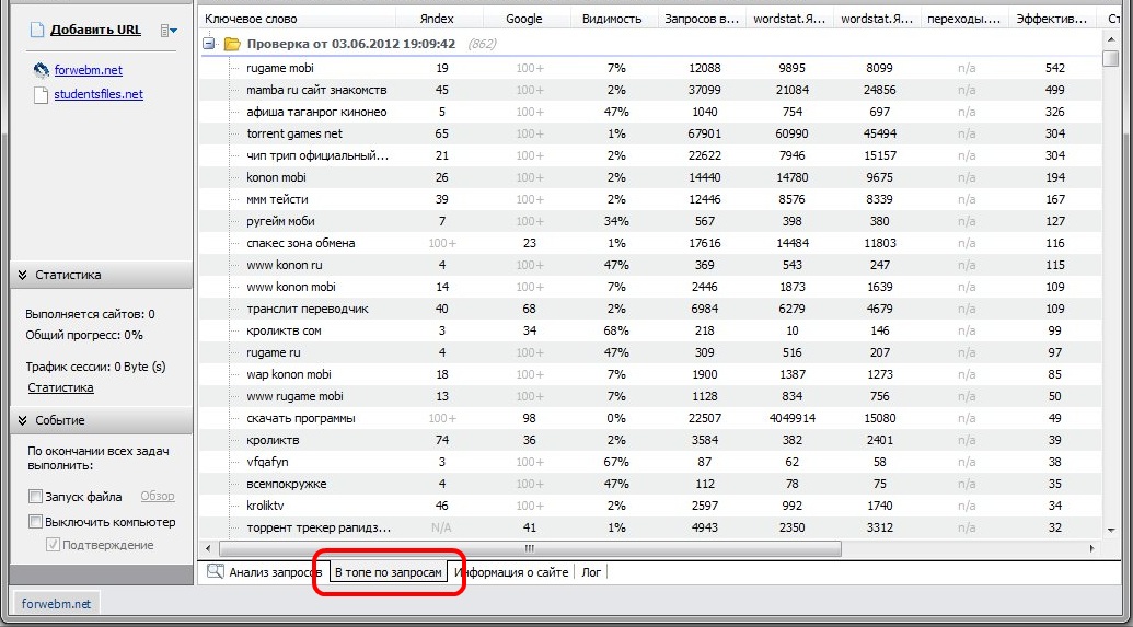 Обзор запросов, по которым сайт находится в топе основных поисковиков