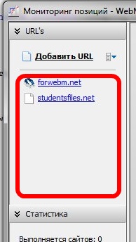 Работа с инструментов `Анализ и мониторинг позиций сайта` начинается с добавления сайта (проекта) в инструмент. Сделать это можно как с боковой панели инструмента, так и в менеджере проектов.