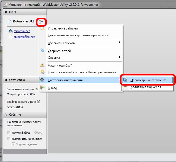 Для настройки antigate Вам необходимо зайти в общие настройки инструмента из главного меню инструмента: