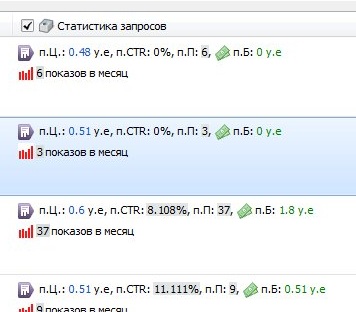 В первую очередь настроим статистику запроса по данным Яндекс.Директа и данные по кол-ву показов запроса по Яндекс.WordStat - как настроить Яндекс.Директ и настроить Яндекс.WordStat смотрите в соответствующих разделах справки. Настройка выполняется следующих блоков: (после проверки с уже имеющимися ключевыми запросами в списке)