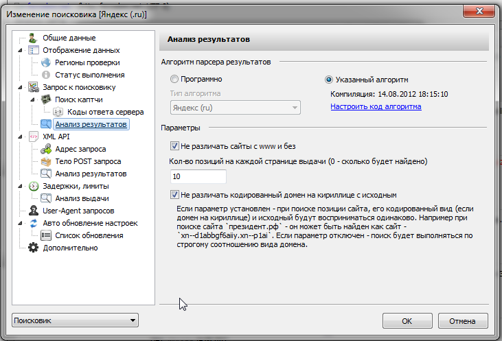 Для примера составления скрипта см. демонстрационный файл - \res\Sctipts\demo\demo_positions_yandex_ru.sctr и \res\Sctipts\demo\demo_positions_yandex_ruXML.sctr