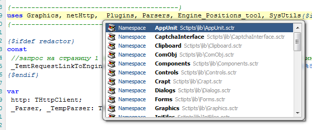 ![]() - обзор доступных для uses секции модулей (клавиша F12)