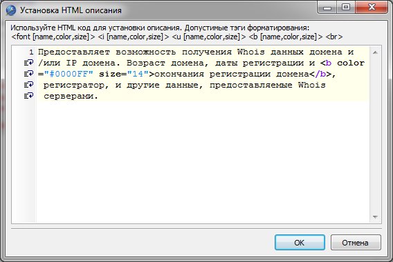 Элементы названия, описания приложения, а также название разделов поддерживают html разметку. При необходимости Вы можете форматировать их текст по желаемым критериям html разметки.